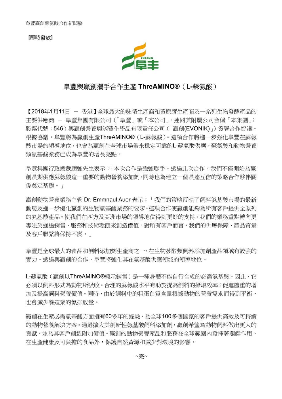 阜豐長期企業信用評級獲標準普爾上調至「BBB-」